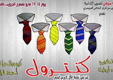 تقدم فرقة «صوفي» للفنون الأدائية، ليلتي عرض على مسرح الجزويت برمسيس، لمسرحية «كنترول» المأخوذة عن النص السويسري «نهاية المال» للكاتب أورس فيدمر، وذلك يومي 18 و19 مايو الجاري في تمام الثامنة.